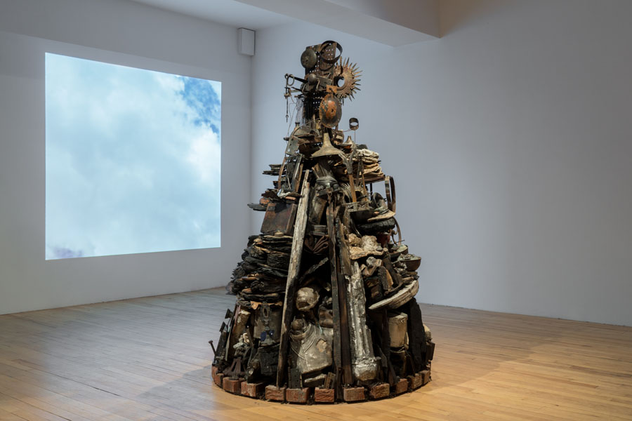 Mes installations sculpturales mettent en valeur les formes de l’amoncellement dans un mouvement d'élévation. Chacune des buttes ainsi créées porte son propre récit. Les quêtes, les croyances et les désirs humains s’incarnent dans les différents empilements de matières accompagnés d’une projection. D'une part, la structure double de scories « renvoie à l’histoire de l’industrie minière, à ses comportements envers l’environnement ainsi qu’à l’attitude des citoyens1 ». D’autre part, les débris d’une église détruite par les flammes forment une butte/montagne de reliques calcinées, d’objets issus de la collectivité et de la culture populaire.